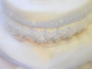 Tutte le parte della torta sono state fatto interamente a mano, dalla pasta di zucchero alla rojal icing, la grande difficoltà per me è stata fare i voulant in quanto non ho nessun attrezzo...prima o poi comprerò anche un garrett frill...