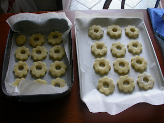Poi li ho subito ritagliati con lo stampino e sistemati sulla teglia sulla quale avevo messo la carta da forno.