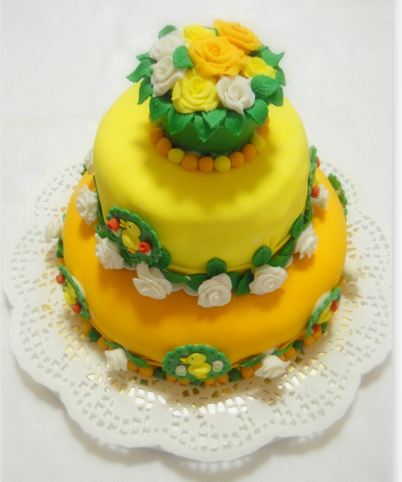 Per la decorazione (rivestimento, bordi, rose, foglie, placche con pulcini, palline):