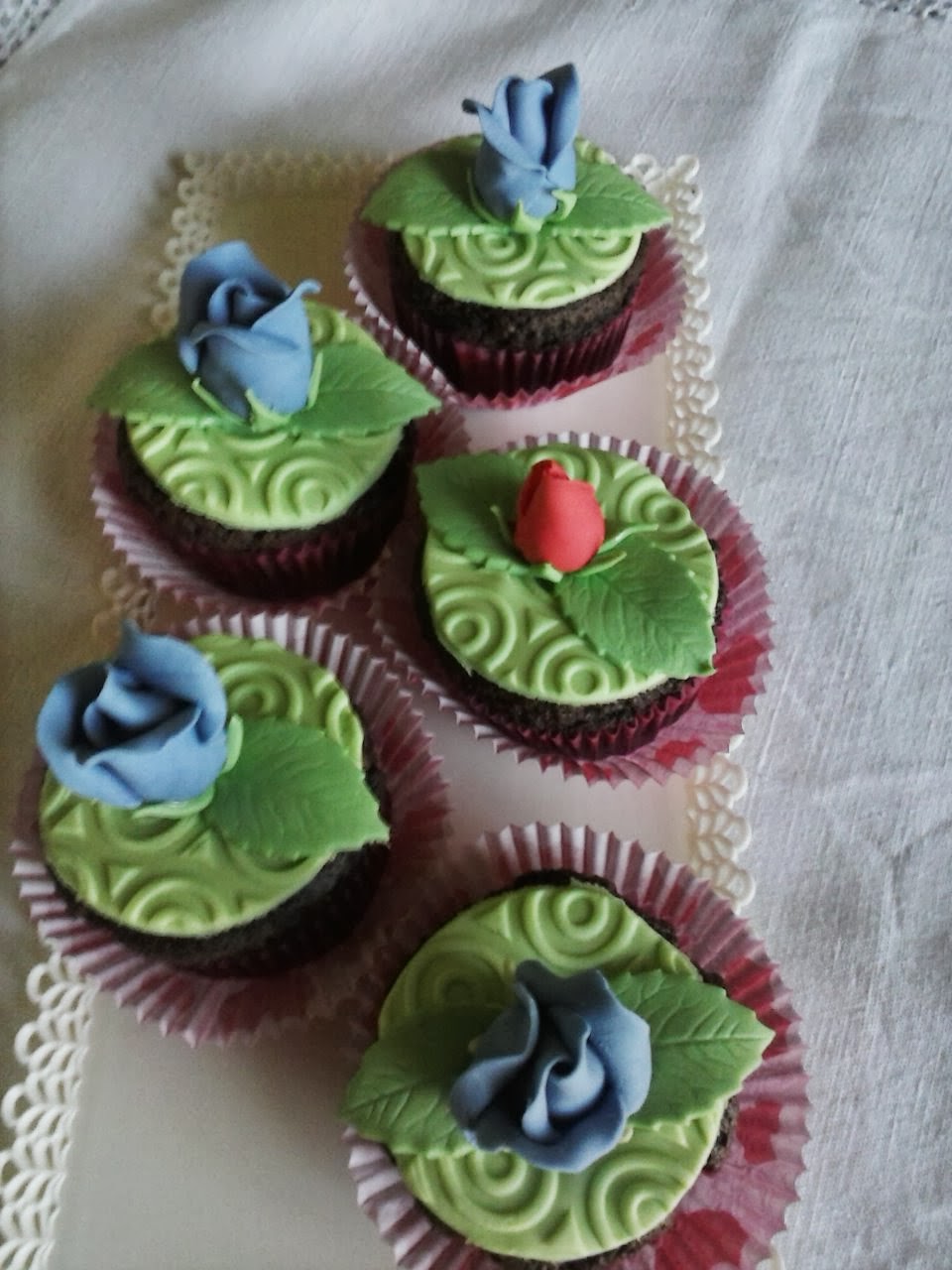 Torta al cioccolato fondente........anzi....tortini realizzati con l'impasto della torta al cioccolato ;))))).......così abbiamo riciclato anche le ultime rose avanzate dalle targhe..evvai!!... :)